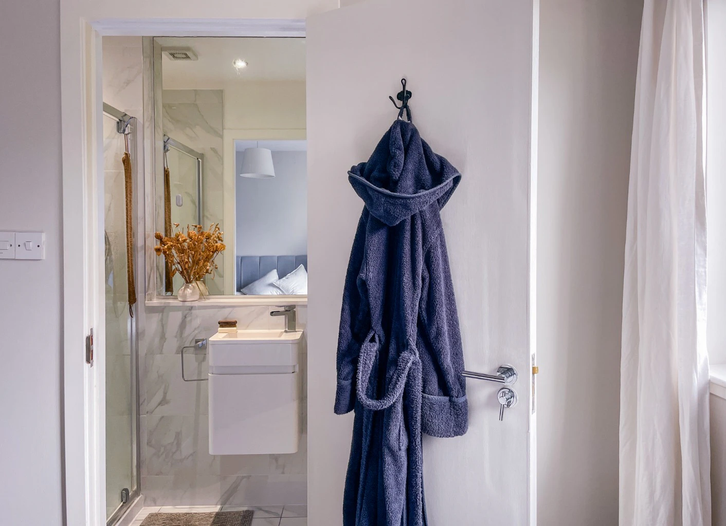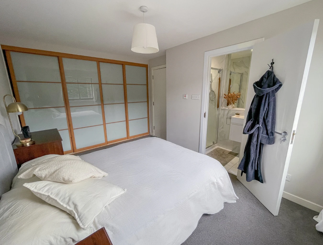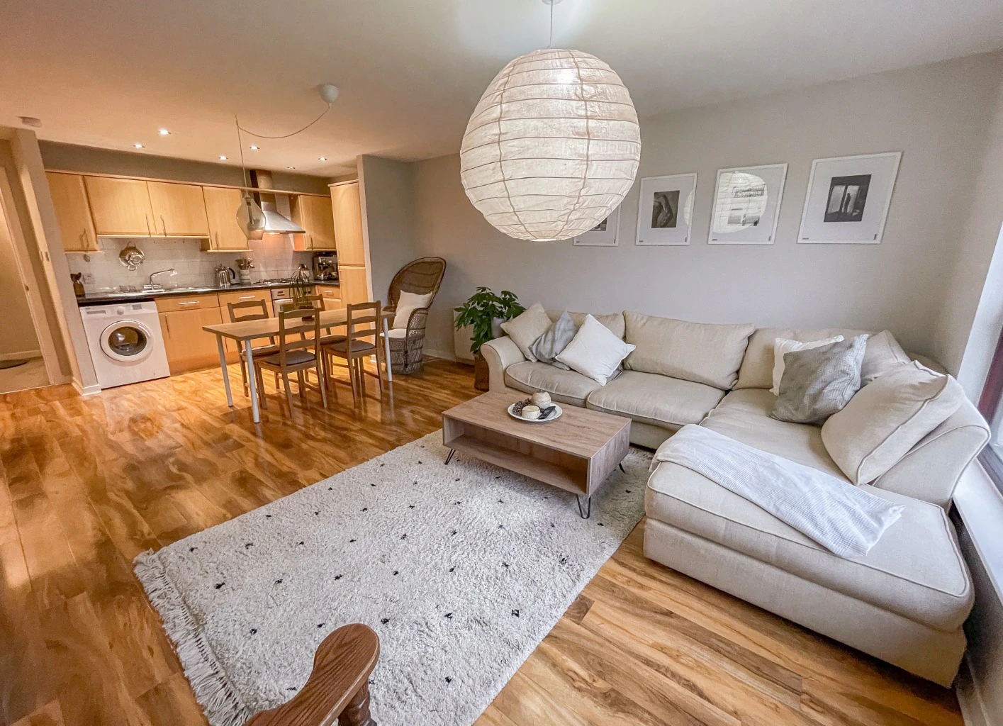 This apartment is of a good size with accommodation of two double bedrooms with built in wardrobes, nice and bright south facing lounge with space for dining and private balcony entered via French windows. There is a modern main bathroom including shower over the bath and separate en-suite shower room off the master bedroom. The kitchen has been fitted with modern units and appliances (fridge/freezer, washer dryer, microwave, gas hob etc) and is open planned off the lounge and dining area.