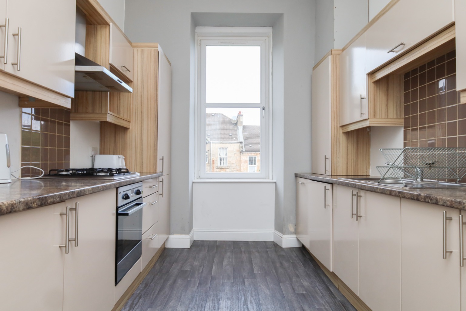 Step inside to find spacious accommodation, including a hallway, modern kitchen, three generously sized bedrooms, and a bathroom on the entrance level. Upstairs, you’ll find three additional bedrooms, one featuring an en-suite and a private balcony, perfect for enjoying city views.